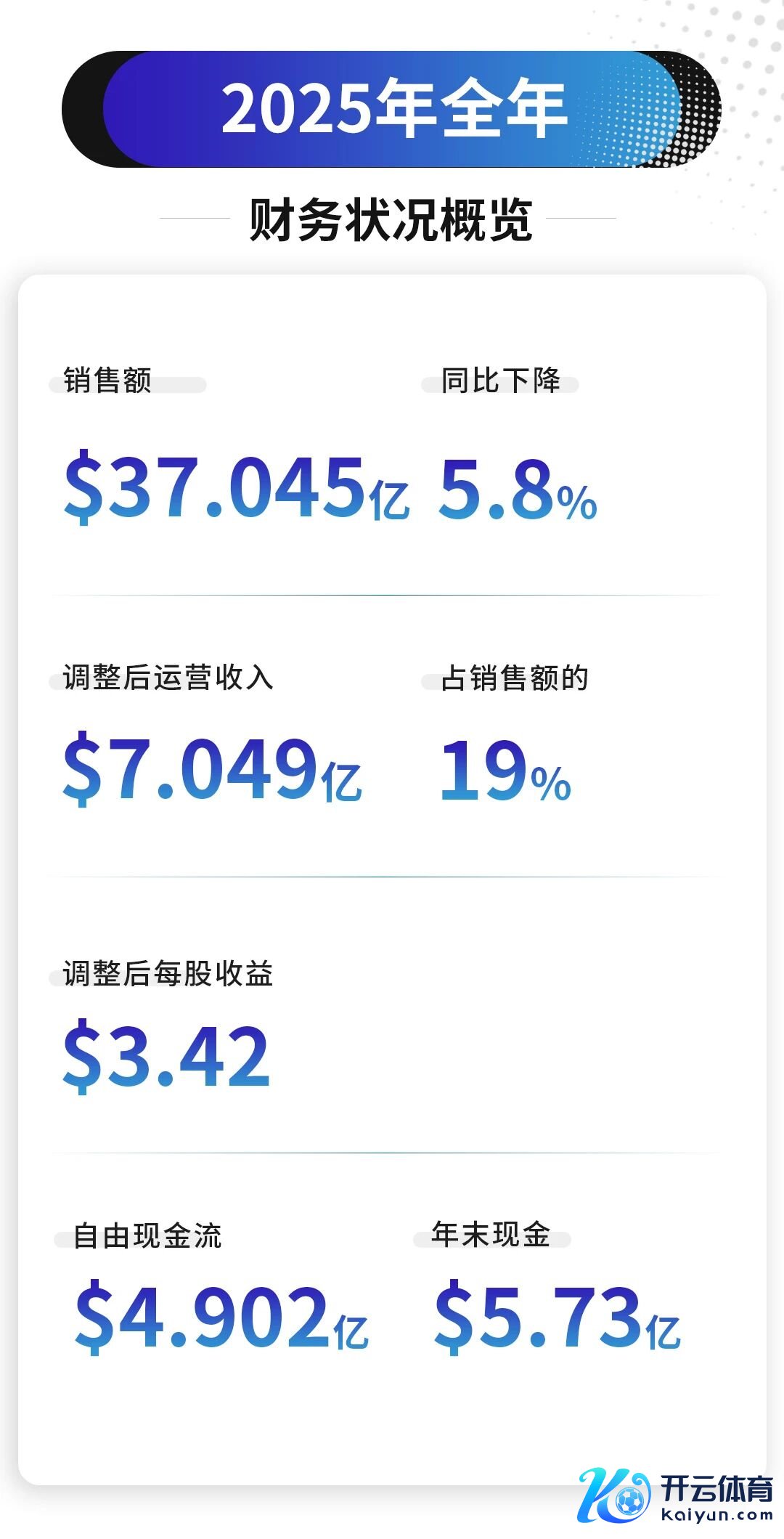 全年来看,森萨塔科技已毕销售额37.045亿好意思元,同比下落5.8%,转化后运营收入7.049亿好意思元,营收占比19%,转化后每股收益3.42好意思元,全年目田现款流达4.902亿好意思元,年末现款储备5.73亿好意思元。