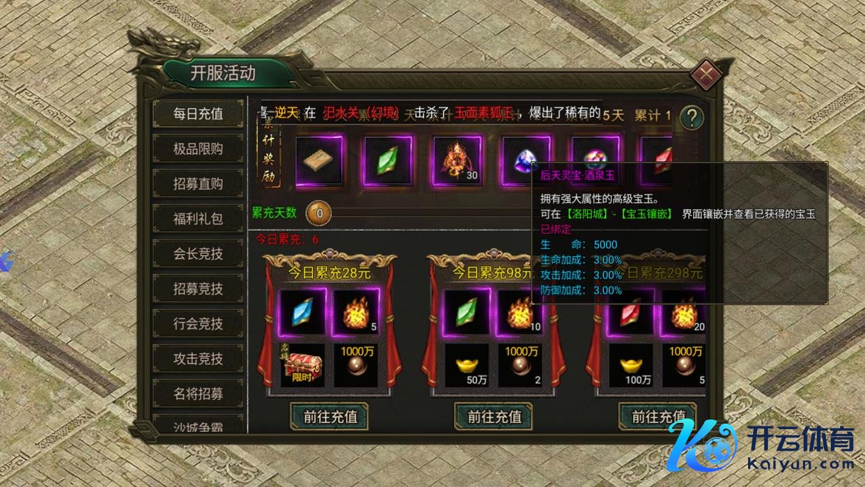 逐日充值与累充奖励:充值礼包或累计充值达到指定天数,可径直领取杰作宝玉,高阶宝玉最快获取模样。
