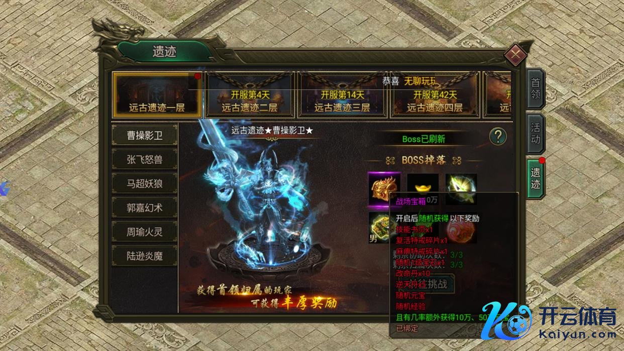 旷古作事BOSS:击杀境界高阶BOSS或旷古秘境BOSS,有概率掉落宝玉、宝瓦全片及合成材料,定时蹲点收益相识。