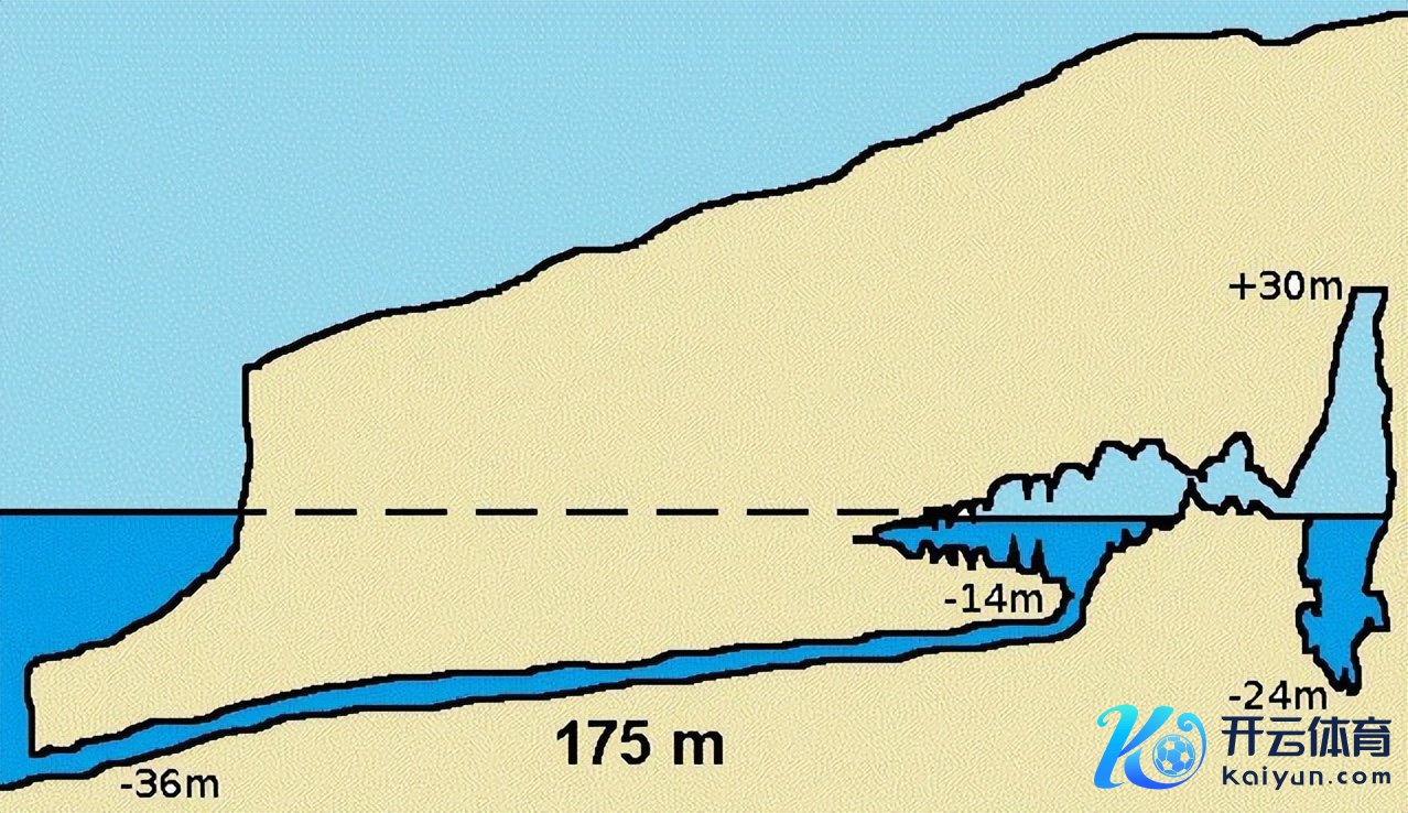 这是一个都备密封的洞穴,之是以里面莫得被水掩盖,原因就在于它比洞口的海拔更高,跨越了海平面。