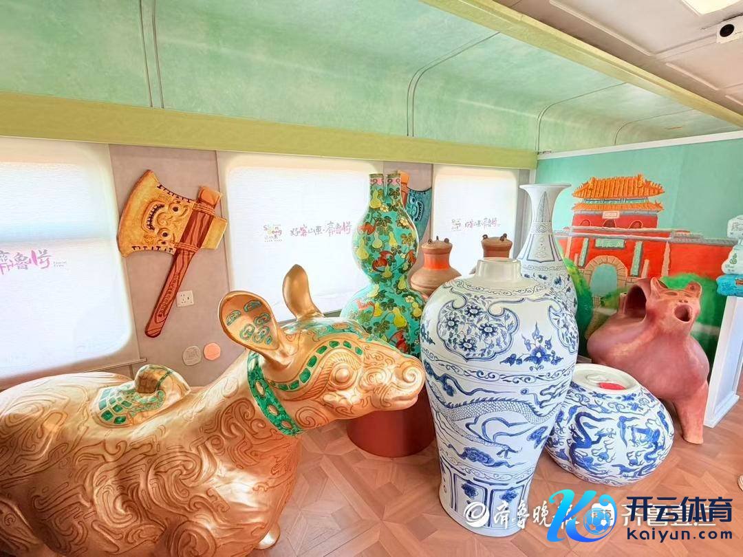 在文娱车厢的“文物丛林”里,摆放有很多“镇馆之宝”文物造型,和原件比较被放大了数倍,众人不错上手触摸,拍照打卡,充满兴味性。
